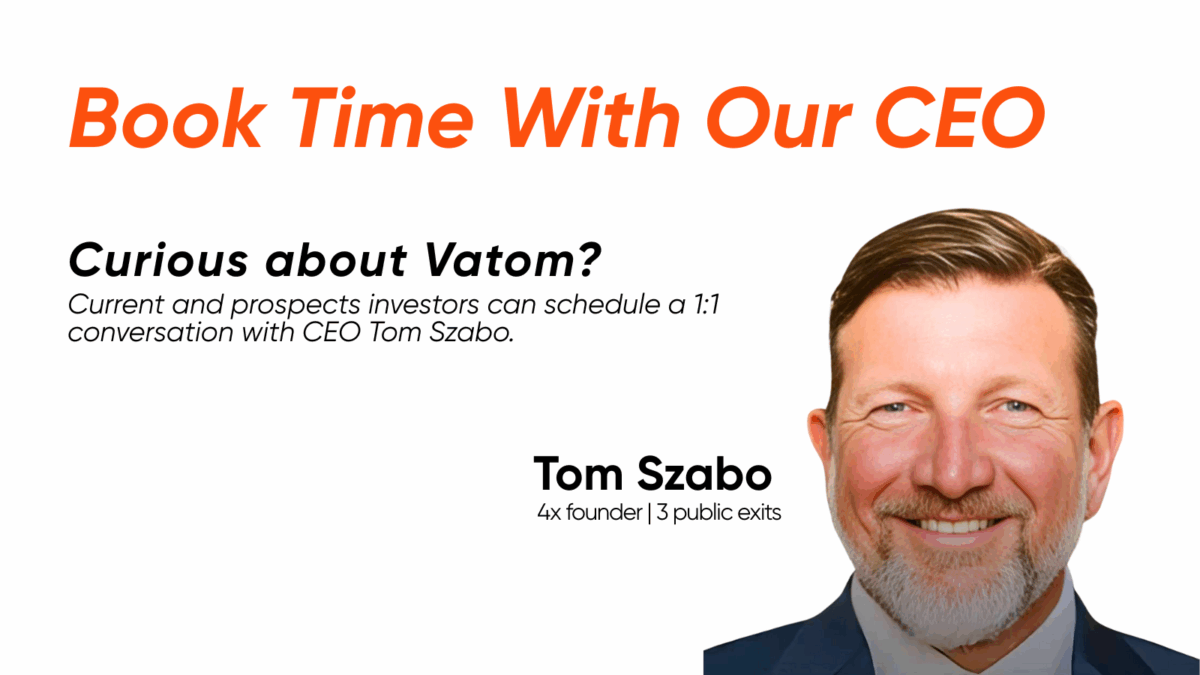 Hello Friends & Investors, Following the strong interest in our recent investor webinar, we are opening a limited number of one-on-one meeting slots with Tom Szabo, CEO of Vatom, available exclusively to current and potential investors. This is an opportunity to: Schedule Your Investor MeetingBook a Time with Tom Szabo Tom is looking forward to […]